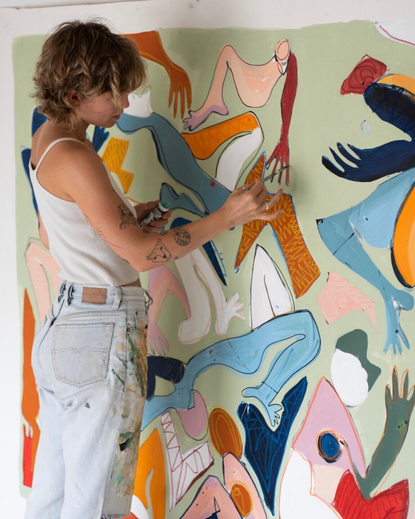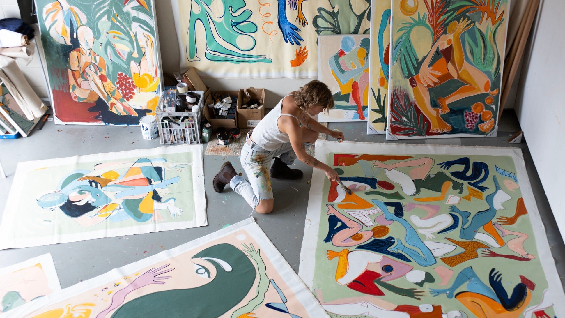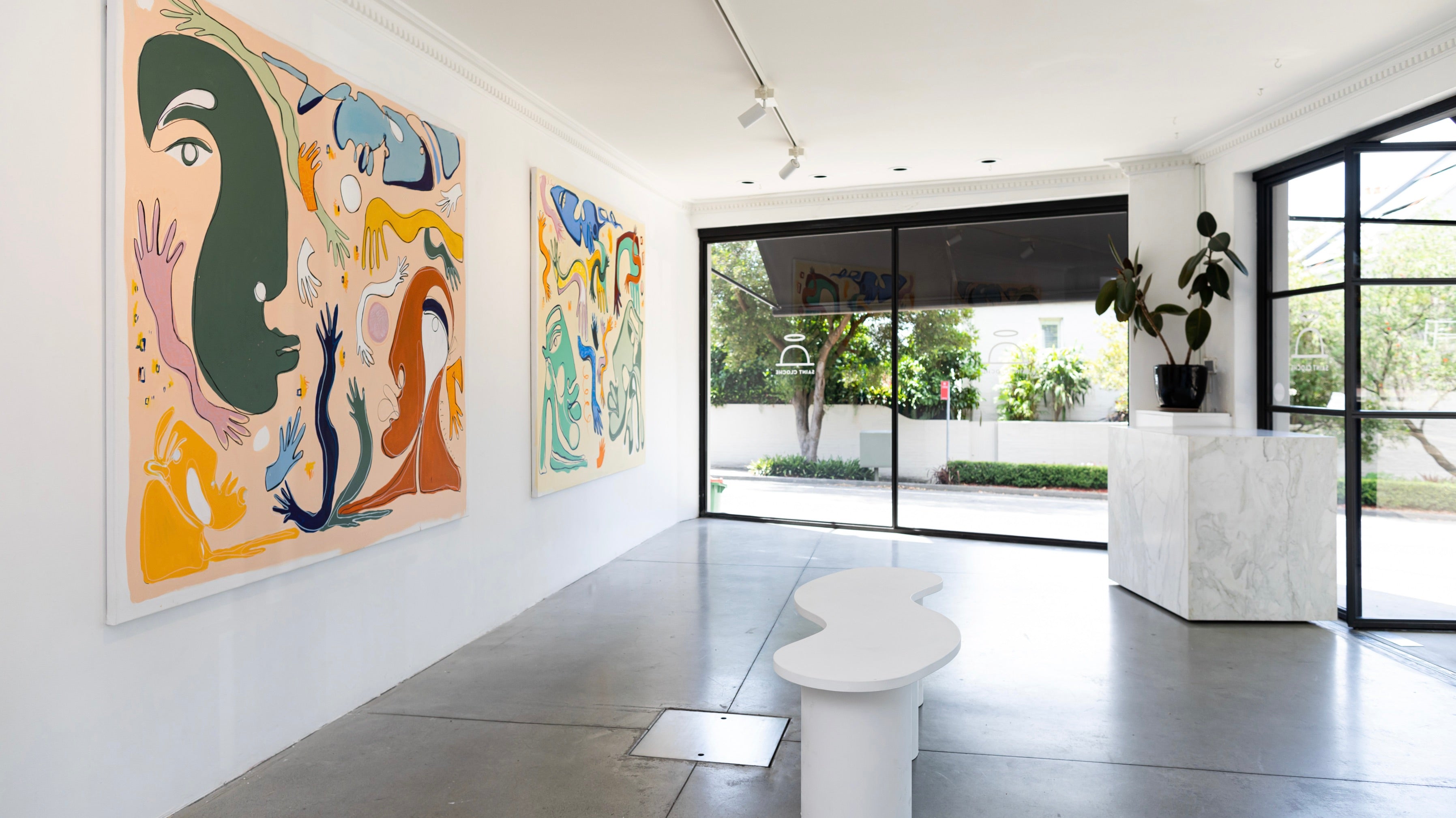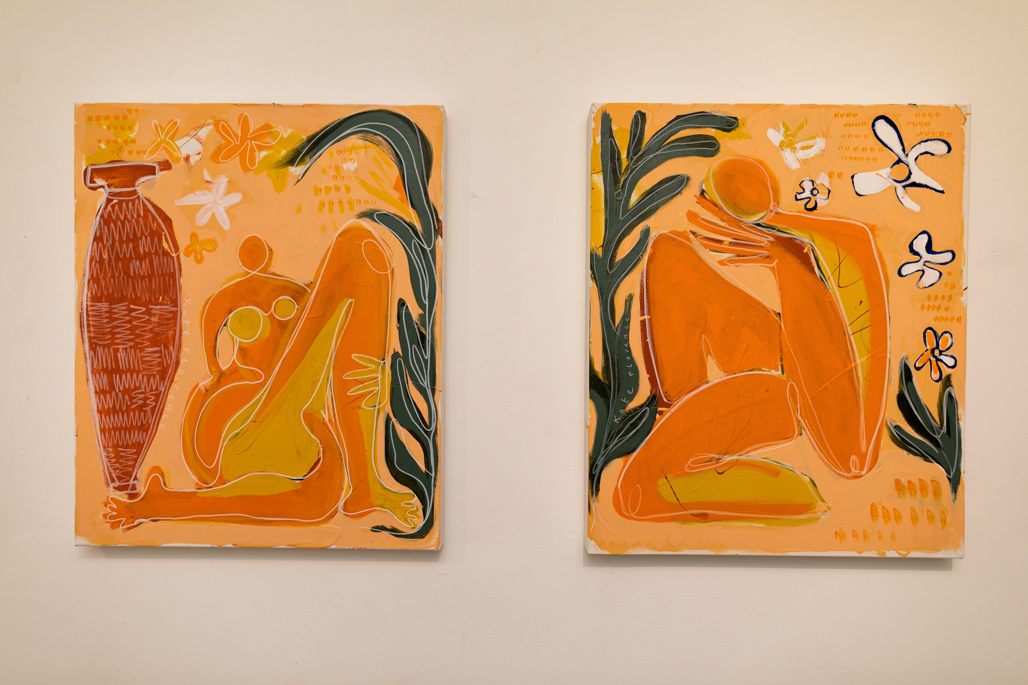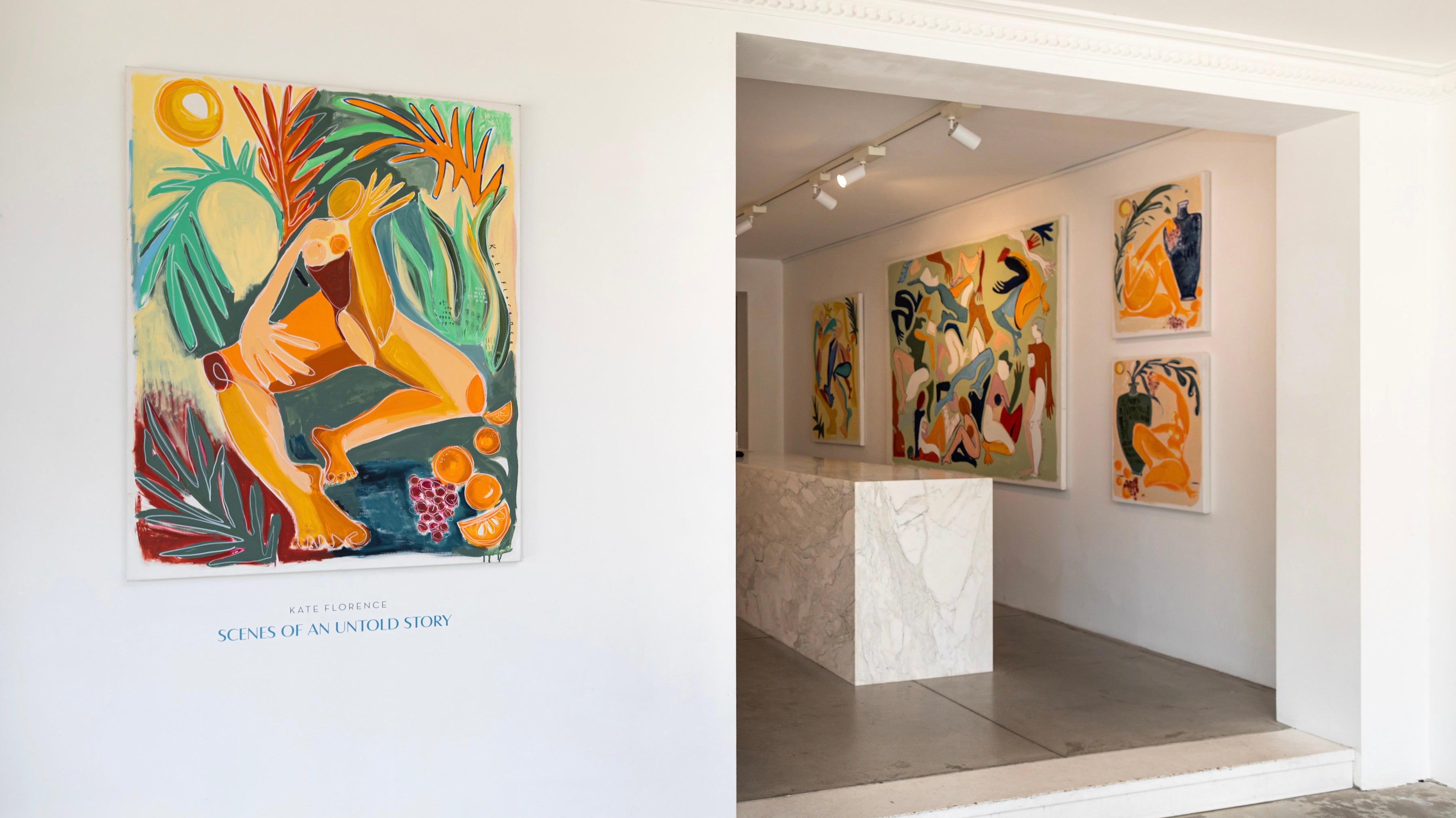 The paintings in the exhibition are a lively exploration reminiscent of post modern expressionism and Matissian composition. Stills that are encompassing layers of form, snippets of a story, with no beginning and no end; moments of play and energy, joy and tenderness.