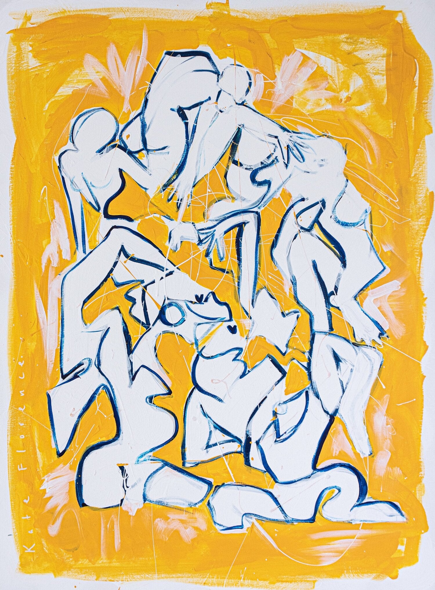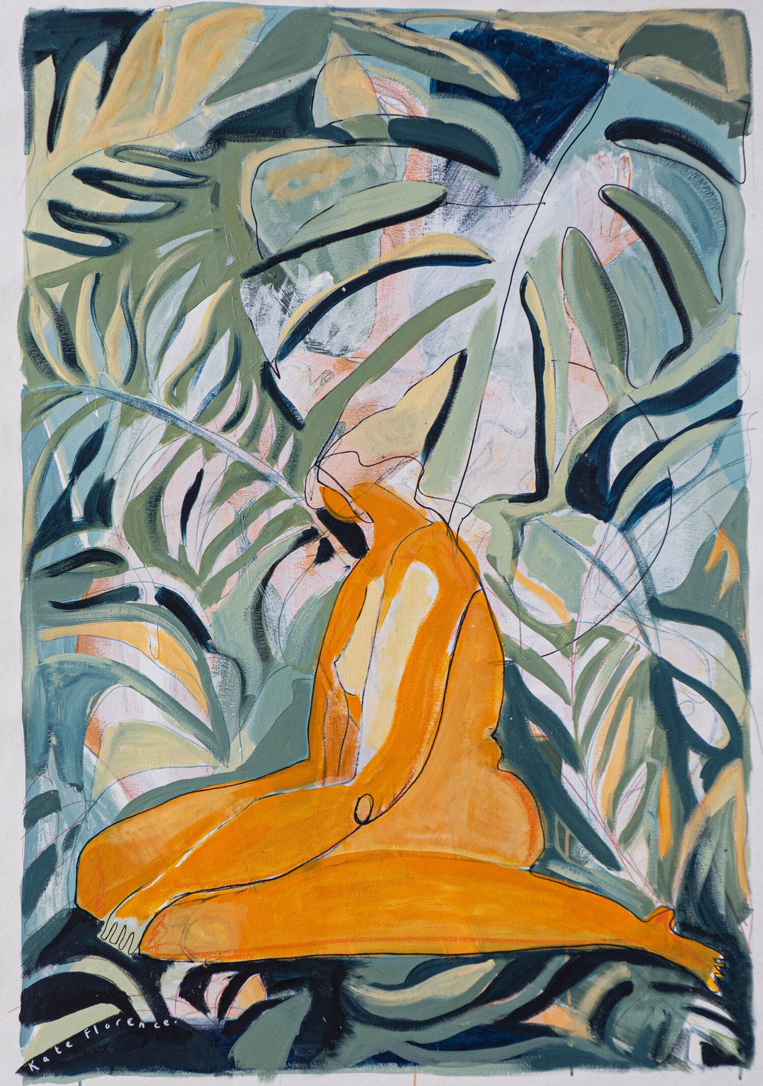 In each piece Kate explores soft, large areas of colour, layer over layer of paint, each one a building block in time, capturing a moment, before moving, evolving into something new.
