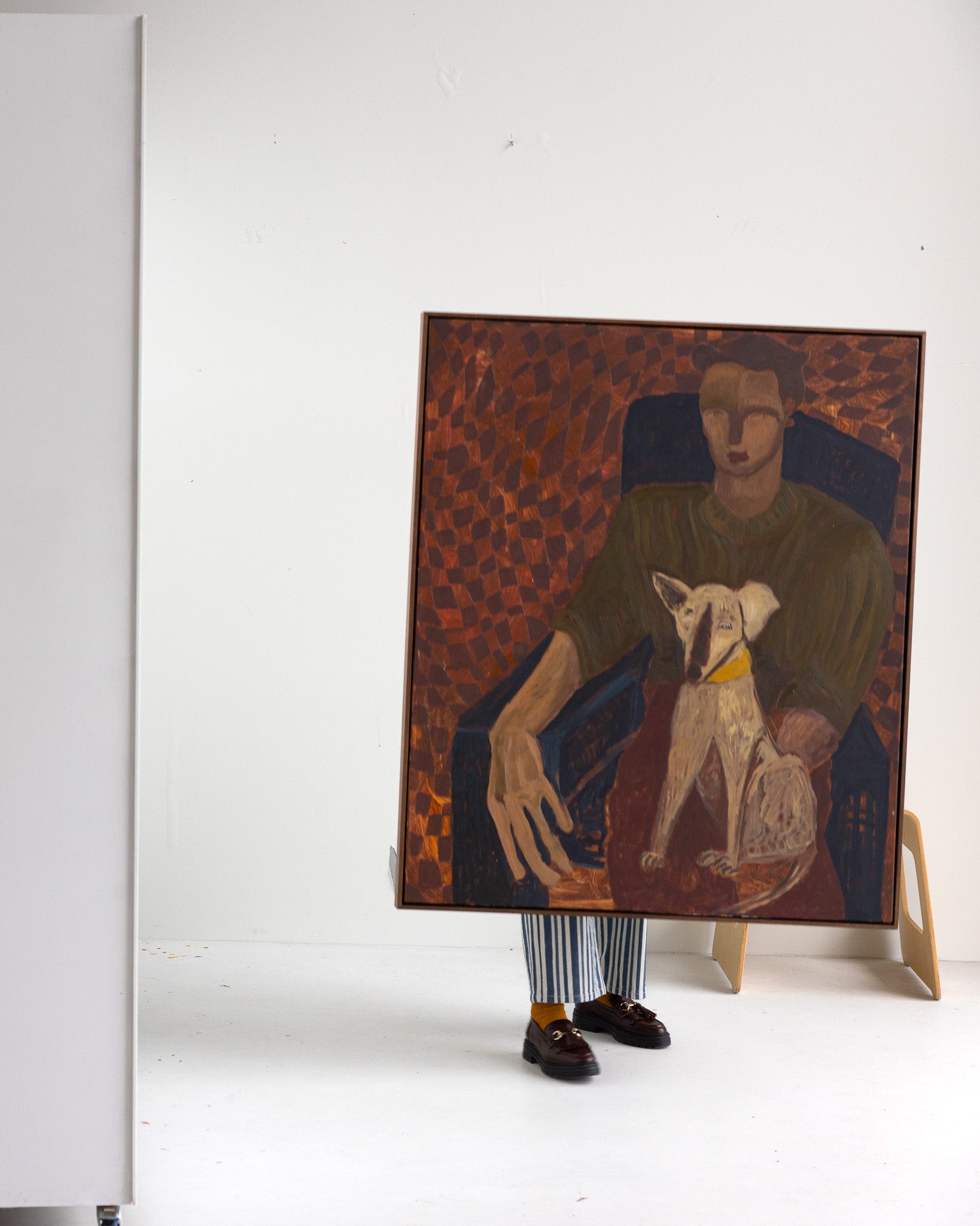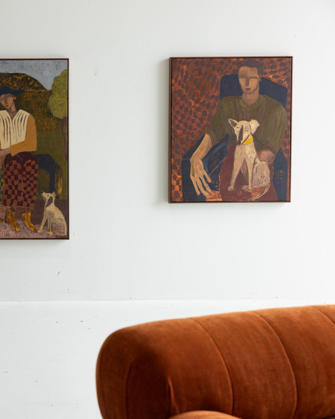 This painting honors the quiet, unspoken moments shared between humans and dogs—those simple, grounding connections that remind us to breathe, be present, and find peace in simply being together.