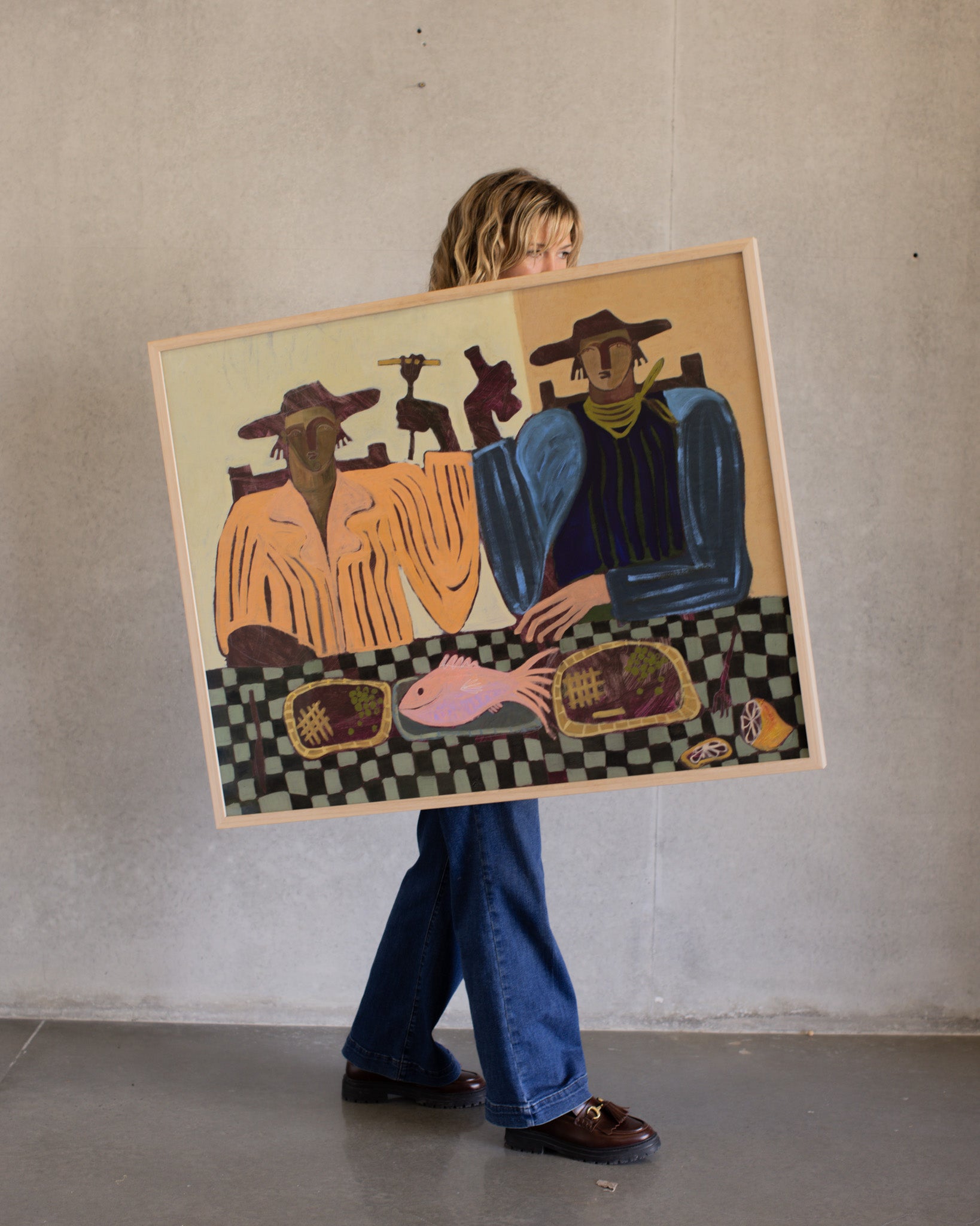 Limited edition Art reproduction print of original Kate Florence painting, “Chippy Tea for Two", previously part of Kate's 2024 sell out exhibition in Singapore with Artworks gallery.