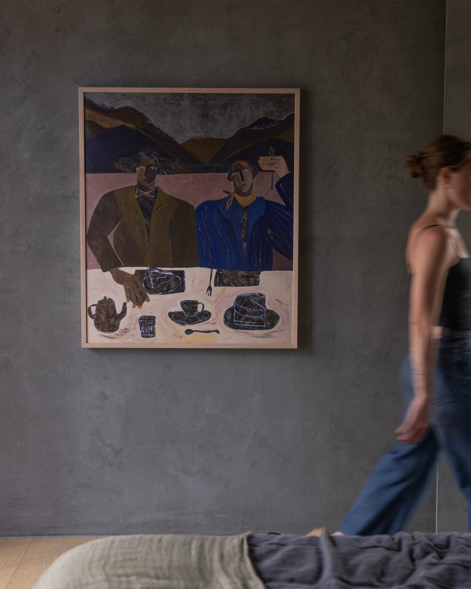Limited edition Art reproduction print of original Kate Florence painting, “Desert Tea Party”, previously part of Kate's 2024 sellout exhibition in Singapore with Artworks Gallery.