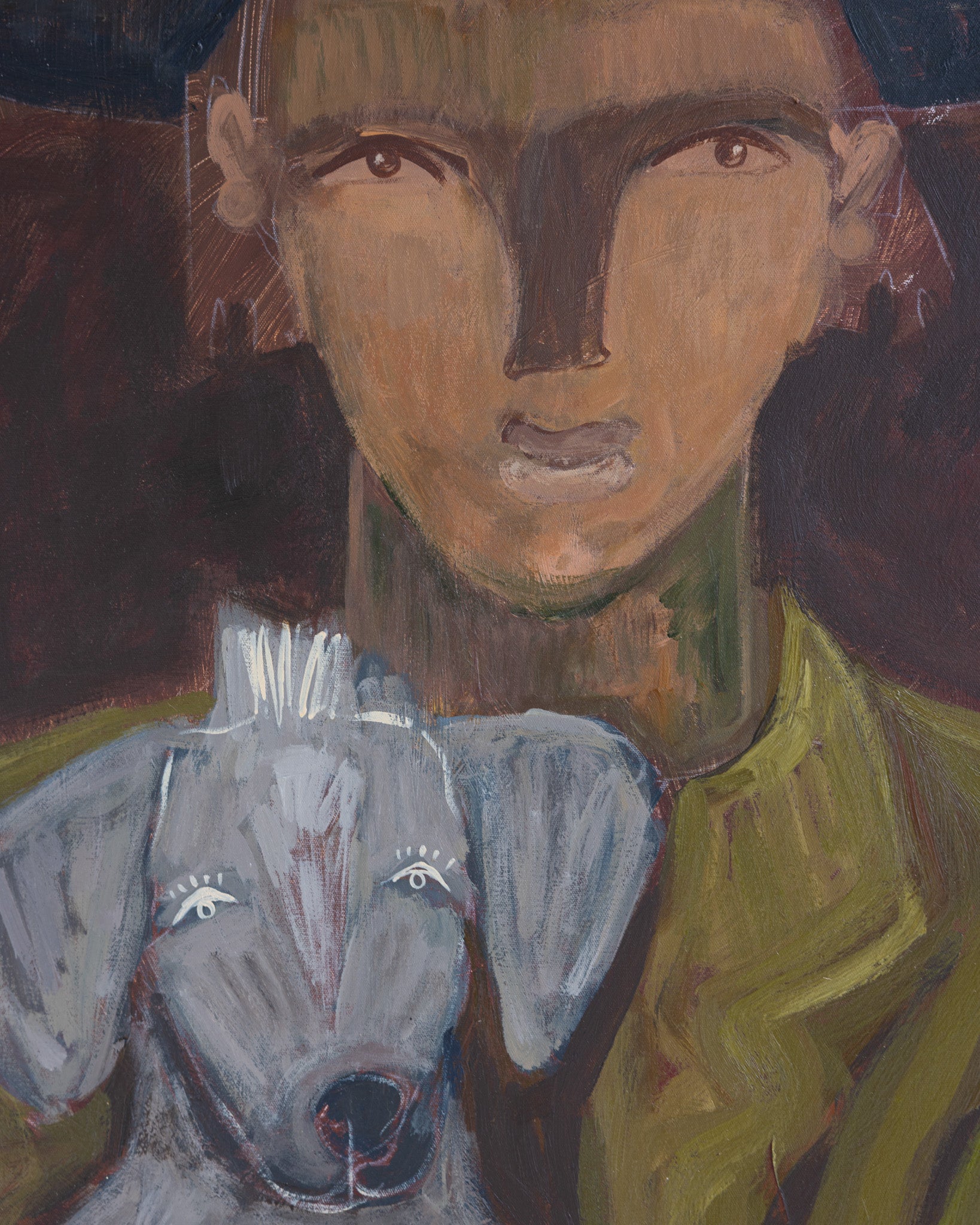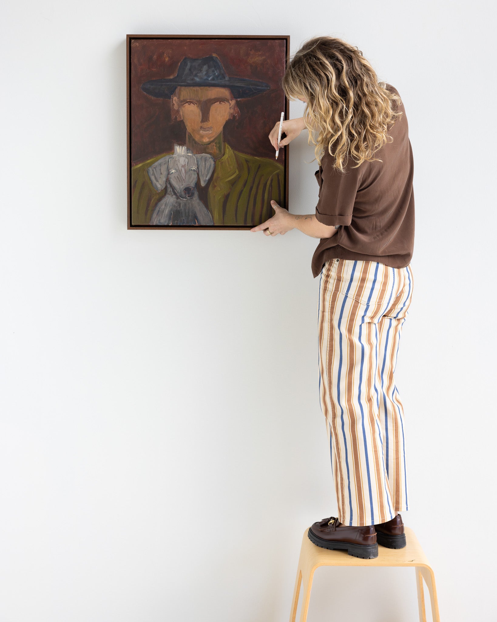 This painting speaks to the way we find ourselves in our four-legged friends, how they become extensions of us—our confidants, our shadows, our most loyal reflections.