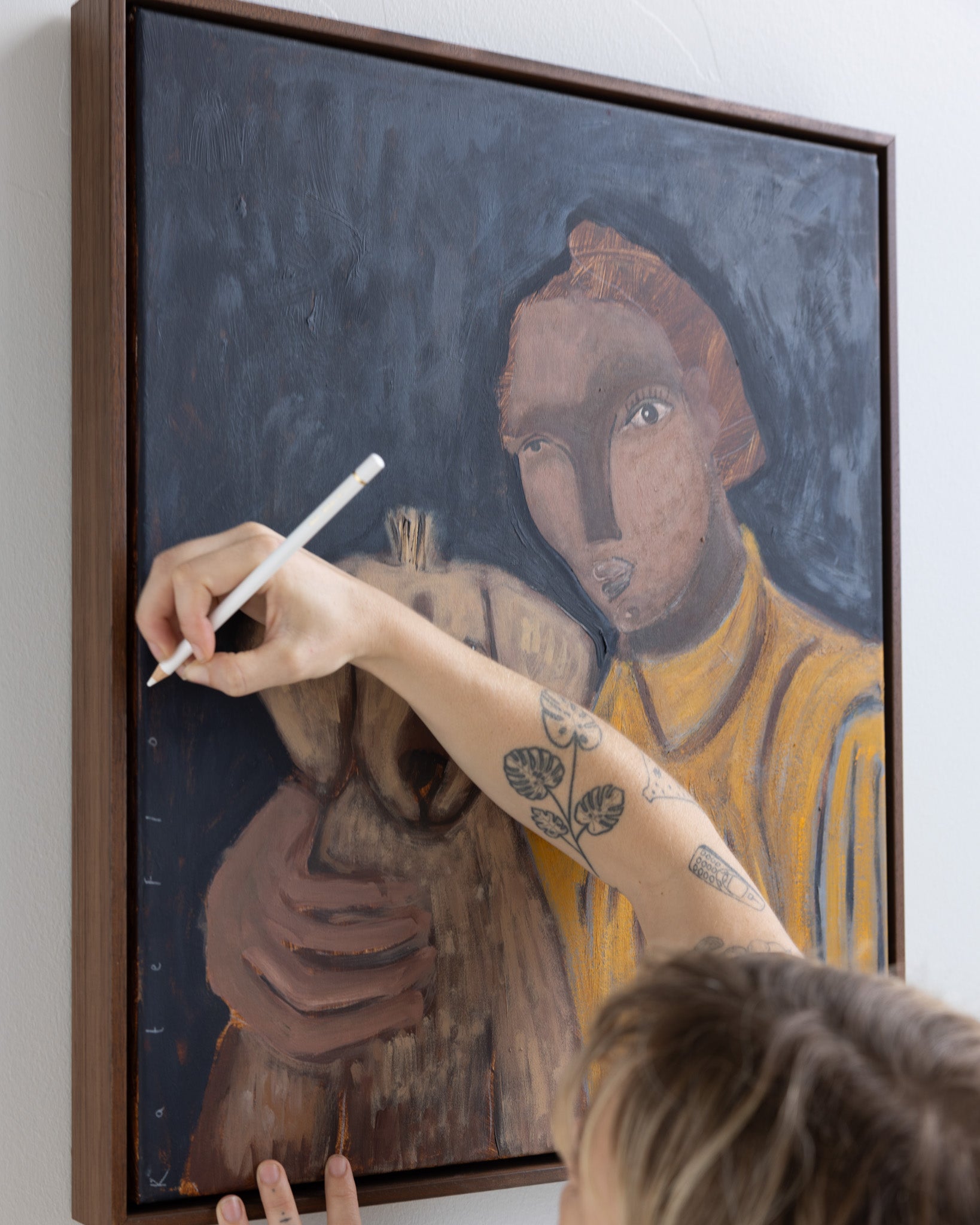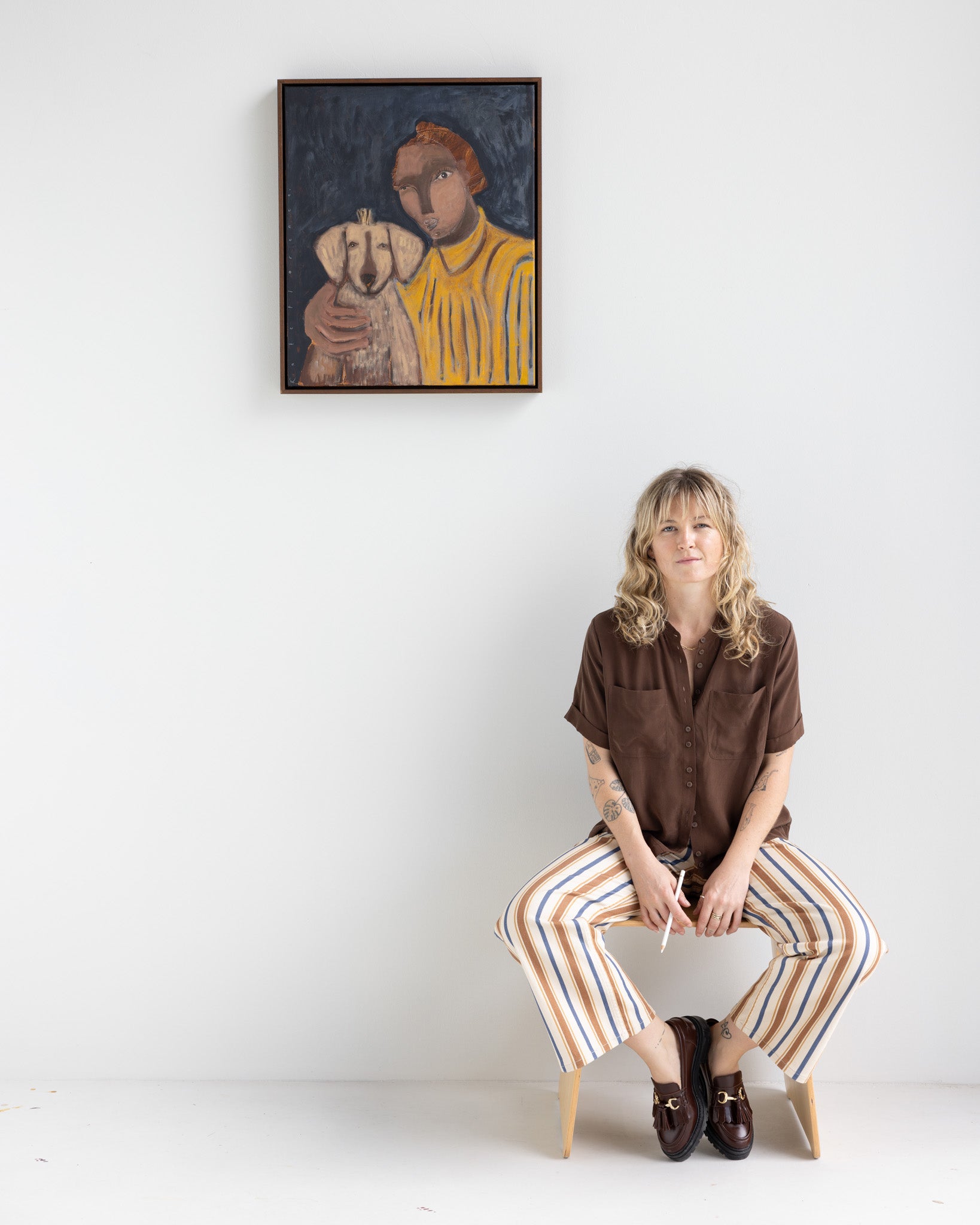 This painting speaks to the way we find ourselves in our four-legged friends, how they become extensions of us—our confidants, our shadows, our most loyal reflections.