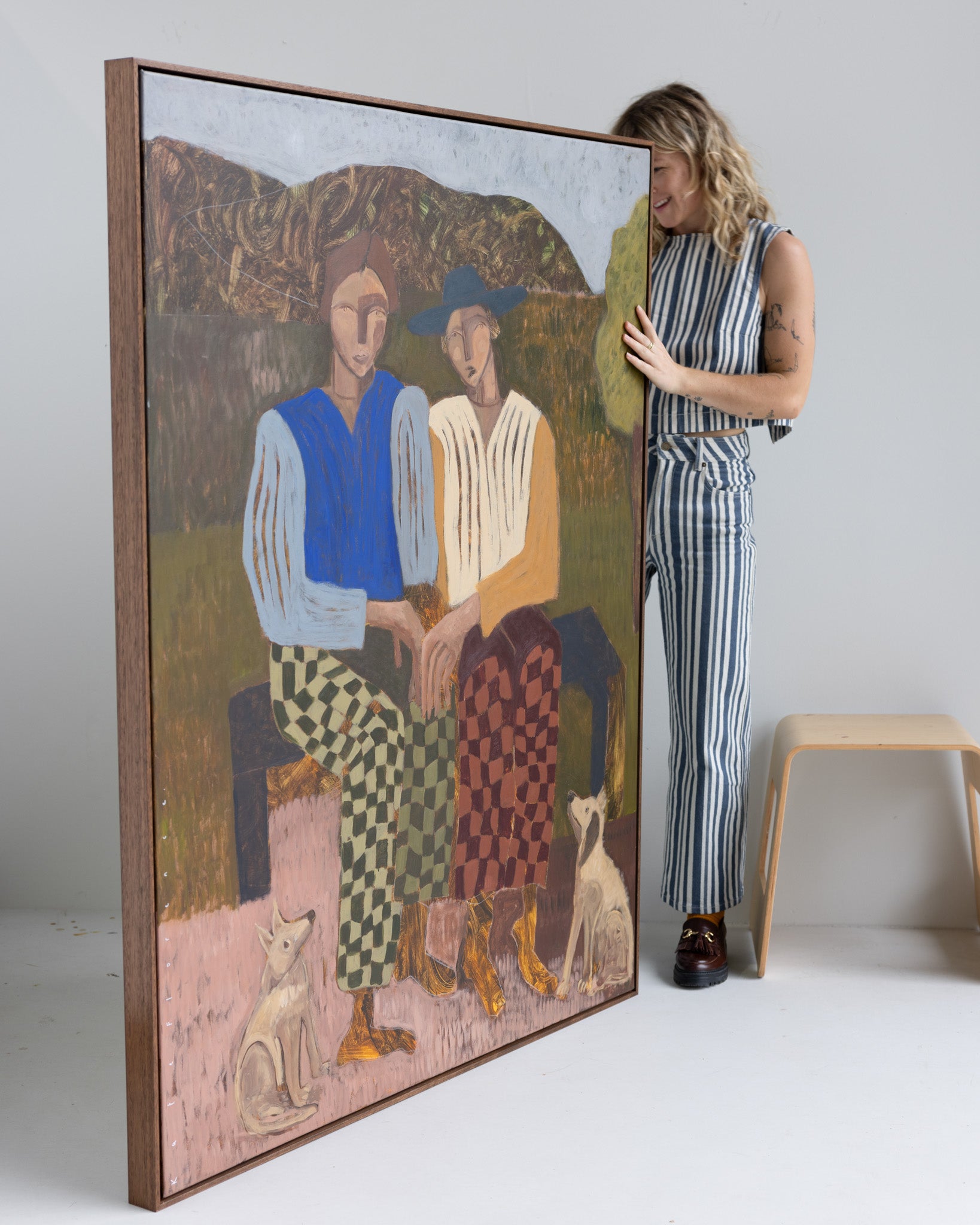 A shared glance, a gentle touch, the quiet understanding that comes from simply being together. In this moment, two figures sit side by side with two dogs at their feet, mirroring their stillness, just enjoying the simplicity if being present.
