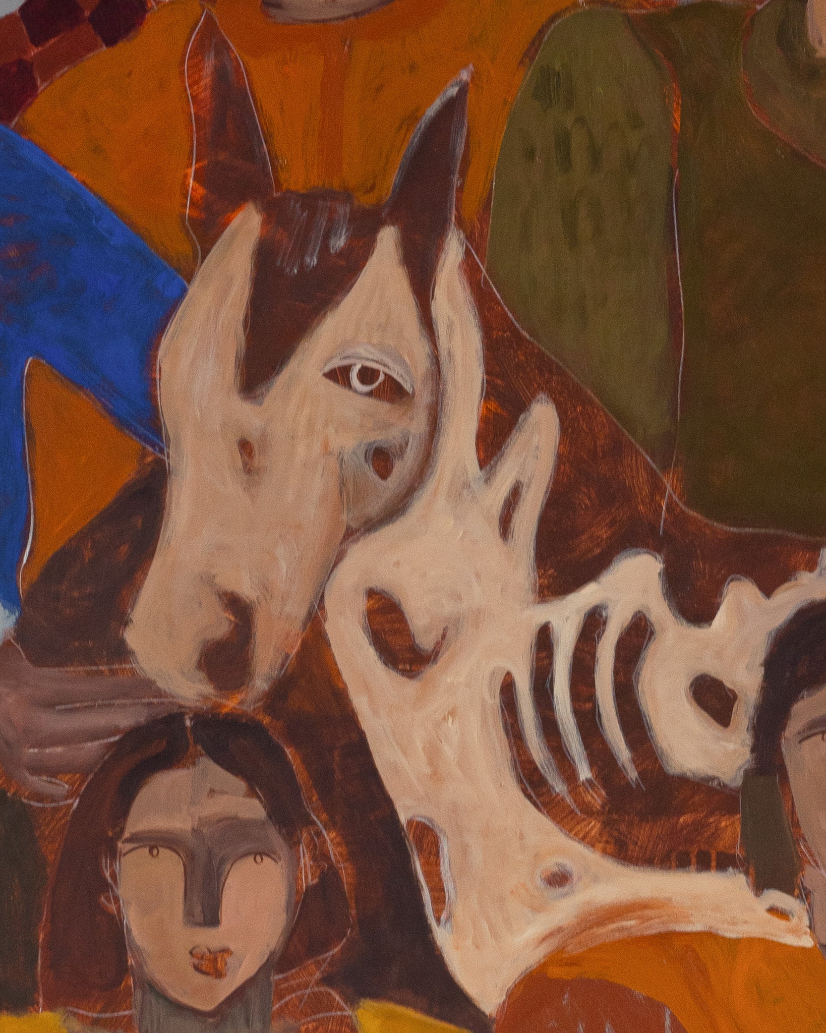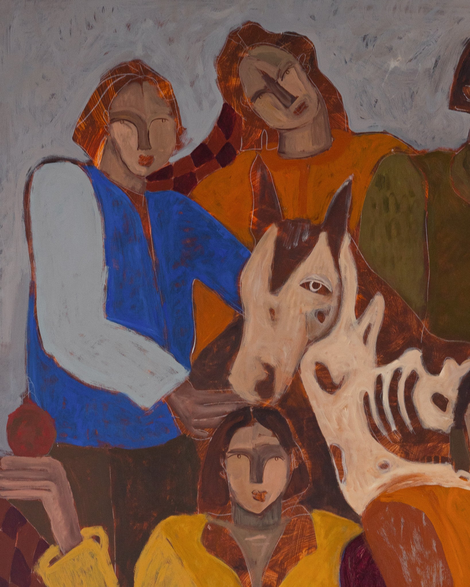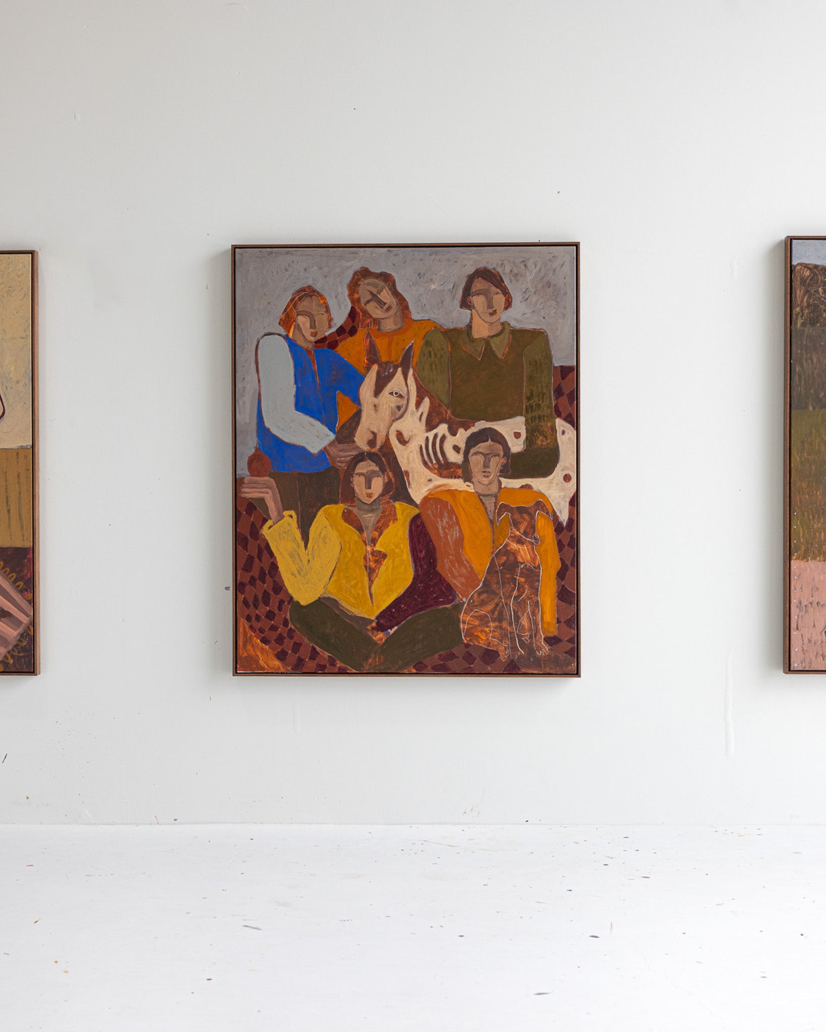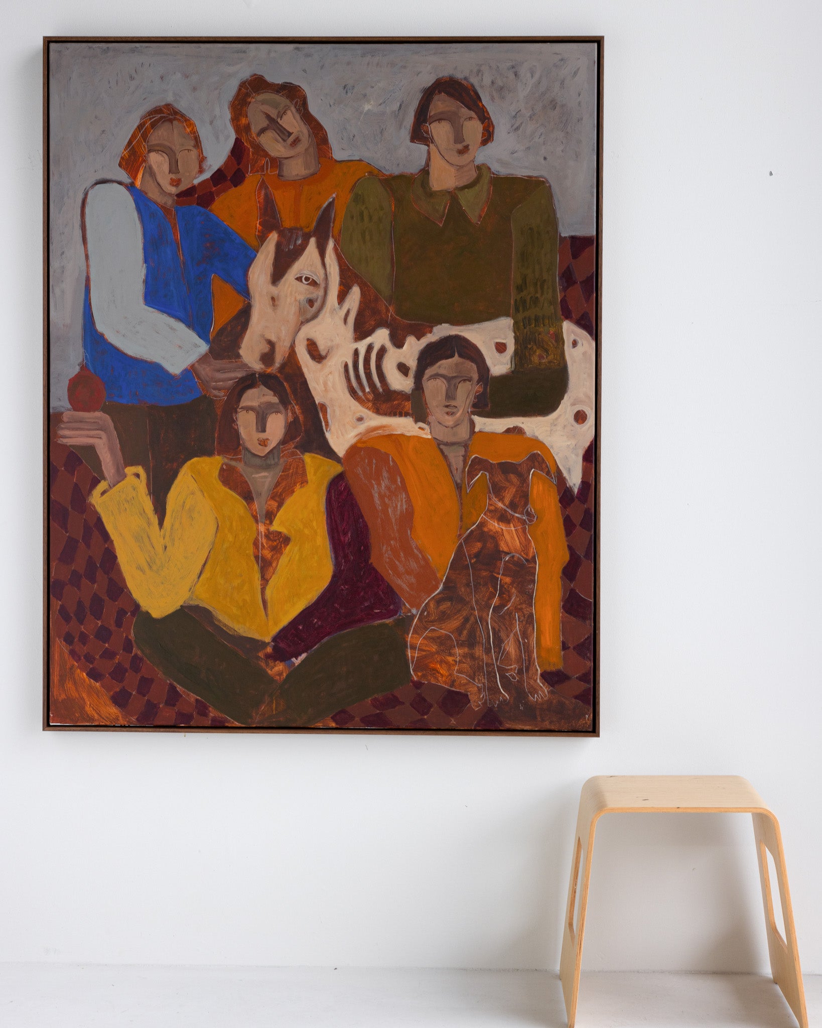 A home is more than just a structure; it’s the lives that inhabit it, connected through shared moments and experiences. In this gathering, the figures come together, their energy fluid and intertwined. At the center of it all, the animals stand as equals—beloved companions, integral to the family, and woven into the very fabric of the home.